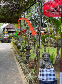 Hay lugares que te encienden el alma y para mi Bali ha sido uno de ellos… Luego de dejar Jakarta, mi esposo y yo, aprovechando nuestro paso por Indonesia, decidimos pasar el fin de semana en Bali; bueno, realmente de viernes a lunes, para descubrir por nuestra cuenta, aquella isla color esmeralda que brilla con luz propia y que se hizo famosa por el libro (que dio lugar luego a la película): “Comer, Rezar y Amar” de Elizabeth Gilbert. Bali (que en sánscrito significa “ofrenda”) es una isla ubicada en la zona occidental de las Islas menores de la Sonda Indonesia; famosa por su cultura milenaria, terrazas de arroz, playas, arte, templos religiosos, lugares para meditar, practicar y perfeccionar el yoga… así que de entrada, puedo decir que esta isla se robó mi corazón!! Con 5636 km cuadrados, Bali está compuesta por una cadena montañosa, volcanes, incluyendo uno activo cuya última erupción sucedió en 1963; playas de arena blanca al sur y de arena negra al norte; con un clima tropical monzónico, cuenta con una temporada de lluvia desde los meses de octubre hasta marzo y con una estación seca. Encuentras personas que te hablan inglés, pero su idioma oficial es el Bahasa Indonesio (originado a partir del malayo), una lengua que traducida es, como si solo te hablaran en infinitivo, es decir, no tienen tiempo, porque para ellos solo existe el Presente, así que la temporalidad la da el complemento de la frase ("yo comer mañana"); no usan adjetivos calificativos negativos, porque ellos no juzgan, es decir, que nada es feo, es menos bonito. Su religión predominante es el hinduismo (90% de los habitantes) en una manera particular llamada "hinduismo balinés" (mezcla de doctrinas hindúes con ciertas culturas budistas), en medio de un país mayoritariamente musulmán. Llegamos a Bali luego de nuestro paso por Jakarta; una ciudad capital caótica, contaminada aunque con sus encantos; a una isla que es considerada como “La Joya de Indonesia”; un importante destino turístico hace décadas! Desde que llegas el aeropuerto, encuentras frases que te empiezan a contar sobre su cultura y costumbres, y es allí donde entiendes que el ADN de los balineses es el “Tri Hita Karana”, que traduce algo así como “Tres causas de bienestar” o “Tres razones de prosperidad “ que son: Armonía con Dios, Armonía con la Naturaleza y Armonía entre las personas… esa es su filosofía de vida! Te das cuenta que es una isla diferente; llena de simbolismo, religiosidad y espiritualidad que se nota desde tu recorrido del aeropuerto al hotel: donde cada rincón tiene un ambiente místico único, el olor a incienso que inunda cada lugar de la isla y en el lugar menos pensado encuentras una ofrenda (Canang Sari), una pequeña cesta de hojas de palma entrelazadas, con arroz, flores, frutas e incienso, usadas como agradecimiento diario y petición de protección a sus dioses.