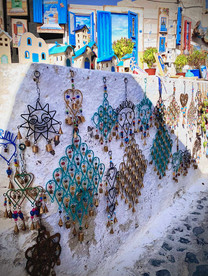 Oia (se pronuncia Ía), situada en el extremo norte de Santorini, con un innegable encanto mediterráneo de casas escalonadas, cúpulas azules y molinos de vientos, es como un pesebre sobre en acantilado, donde las buganvillas resaltan por sus colores, las calles adoquinadas te llevan por un recorrido único, entre cafés, restaurantes, la curiosa Librería Atlantis junto a la calle principal (Atlantis books), hasta el castillo donde podrás disfrutar de la “hora mágica”, una hermosa puesta de sol con vista a la caldera; que se convierte en un espectáculo místico que atrae y embruja, donde todos los espectadores buscan desde temprano, un lugar donde presenciarlo, se quedan en silencio, viendo al sol ponerse; los veleros y catamaranes se fondean para estar en “primera fila” y una vez finalizado, un gran aplauso de emoción espontánea se escucha entre los asistentes, llenando el alma de felicidad.