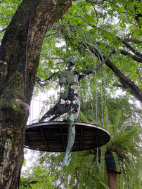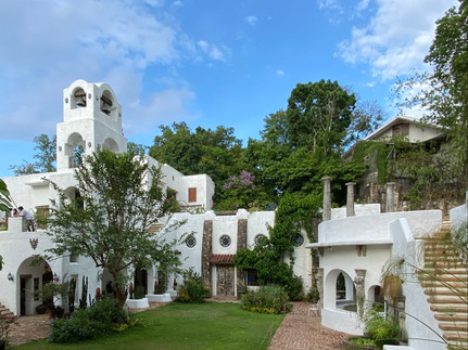 Una vez terminado el almuerzo, seguimos nuestro camino hacia el Museo Pintô; que traduce “Puerta” en tagalo… y eso es exactamente, lo que es el museo: una puerta de entrada al arte moderno y contemporáneo; allí nos recibe una fachada blanca rústica con una campana que nos da una idea de la influencia cultural arquitectónica del lugar: Pequeñas construcciones blancas, como villas de inspiración mediterránea, que se convierten en galerías abiertas, llenas de luz natural, espacios amplios con toques rústicos en madera y baldosas de barro; todas ellas, en medio de una hermosa vegetación, inmensos jardines con fuentes, esculturas y obras de arte que se unen al espacio y dan una sensación de calidez en cada área del museo.